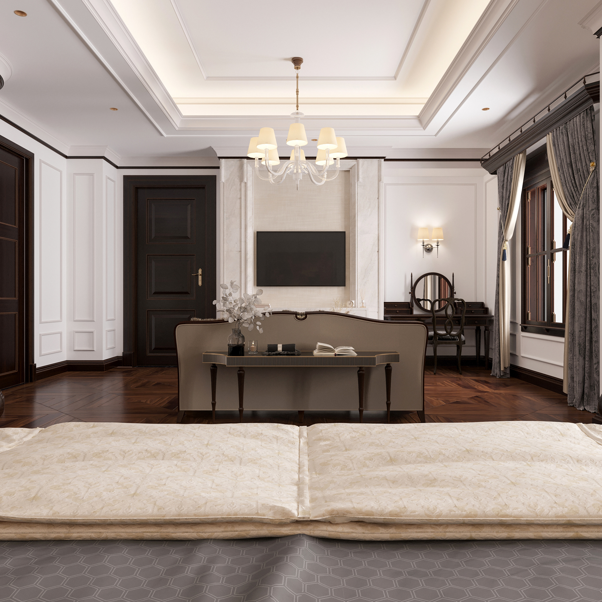 This room has undergone several renovations and has its limitations, such as the ceiling and floor being off-limits for any alterations. The concept of a sophisticated and elegant space serves as the guiding principle in our exploration of the design for this exceptional room.